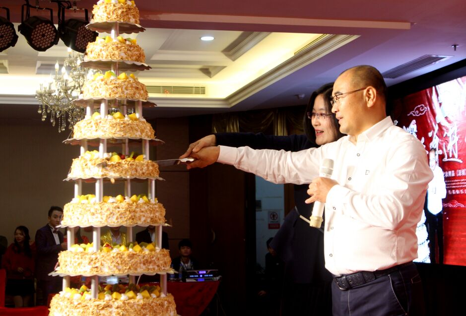 (圖為雅香麗董事長(zhǎng)與副總經(jīng)理喜開蛋糕,寓意2019年的市場(chǎng)份額更上一層樓)