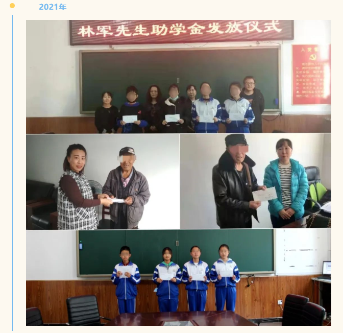 林軍扶困助學(xué)基金是鵬灣公益基金會(huì)理事、雅香麗化妝用品(深圳)有限公司董事長林軍先生為支持家鄉(xiāng)教育及關(guān)愛留守兒童而設(shè)立的教育助學(xué)基金。2019年,林軍扶困助學(xué)基金制定了長達(dá)六年的資助計(jì)劃,并與吉林省和龍市慈善總會(huì)合作,由其對助學(xué)金的發(fā)放進(jìn)行監(jiān)督與執(zhí)行,在和龍市持續(xù)資助5名學(xué)生,幫助他們完成中小學(xué)階段的學(xué)業(yè)。